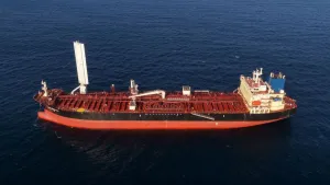 The wind-assisted tanker is expected to cut fuel consumption by 20%.