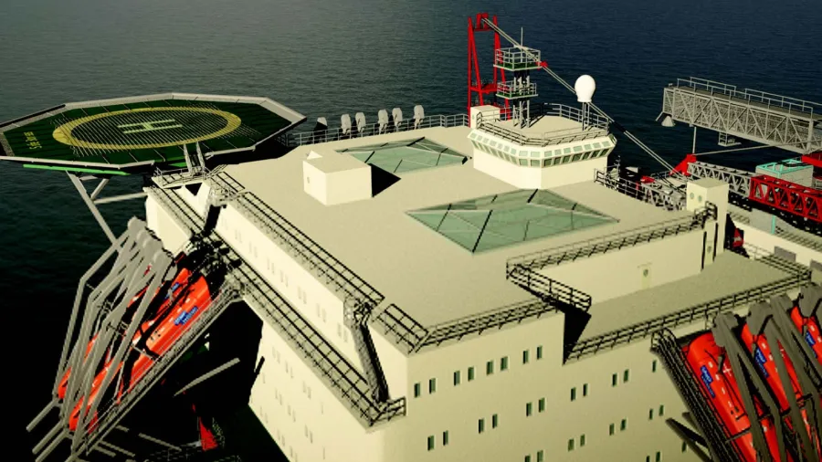 Built to comply with stringent Norwegian and UK regulations, the accommodation units on these vessels can house 450 men in single cabins. The design incorporates glass atriums that provide natural light to the central cabins, mess room, and recreational areas, enhancing the living conditions for offshore workers.