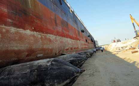 On 14th Nov ship "Mosa" sat steadily on all supporting concrete blocks. Docking vessels with balloons doesn't need concrete slipway and trolley so it saves most investment and time. Till now, lightweight 6,000 tons vessel has been successfully pulled out of water with this technique.