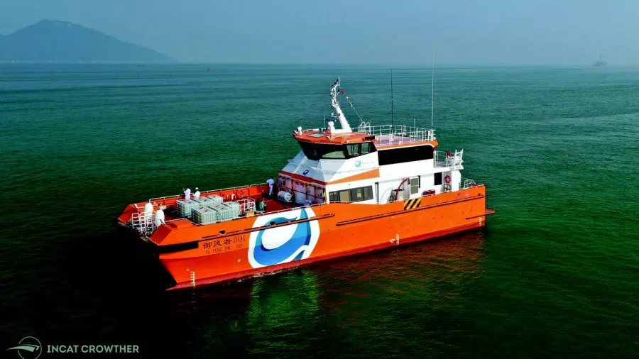 Incat Crowther is proud to announce the handover of a new purpose-built catamaran CTV to Goldsea Marine & Offshore Engineering (Shanghai) Co Ltd (Goldsea). The Incat Crowther 32, built by AFAI Southern Shipyard in Guangzhou, represents a step change for the Chinese offshore wind industry, offering enhanced capabilities including a large cargo zone and a maximum speed of up to 25 knots.