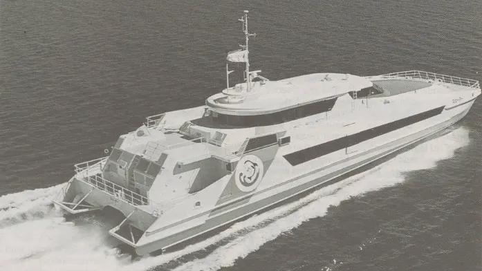 Built for Diamond Ferry Ltd of Japan, a subsidiary of the giant shipping group Mitsui OSK, the 331 passenger, 42.5 knot catamaran will operate in the Inland Sea of Japan between the cities of Oita on Kyushu Island and Matsayama on Shikoku Island, completing the journey in two hours. The vessel will be officially handed over to Diamond Ferry at the end of May 1995.