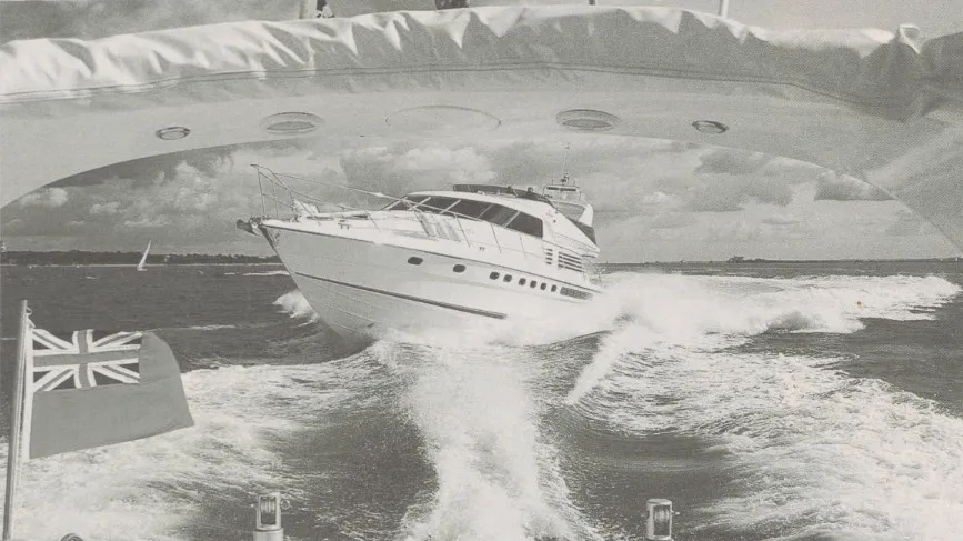 Sweeping through the water, the sophisticated Fairline Squadron 65, seen here going through its paces at Southampton, was one of three new boats to be "launched" by the company at the show. It joins a fleet of 11 different models, all built by draftsmen at the firm's workshops in eastern England.