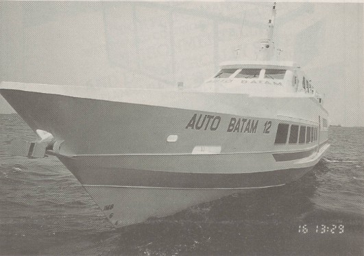 'AUTO BATAM 12', certified Special Limit Passenger Vessel by Singapore Marine Department, has a loaded speed of 29 knots with a range of 200 Nm.