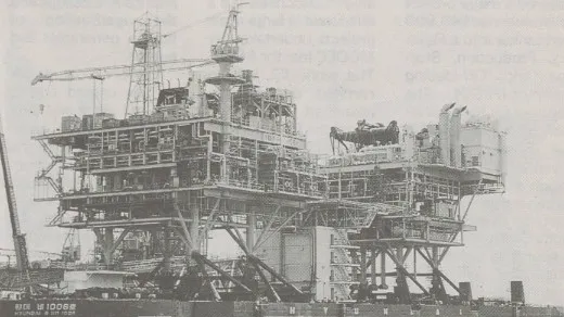 Weighing 5,300 tonnes, the three -level process deck measures more than 100 ft high, 200 ft long and 100 ft wide and was completed fully assembled on ground. Due to the intricate nature of the construction, the east west portions of the deck were disassembled on loading onto the barge, the east deck was first loaded onto the barge on 9th April 1995 followed by the west deck on 14th April 1995.