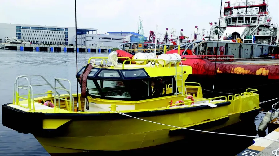 The innovative vessel sets itself apart with an advanced marine propulsion system. Instead of conventional propellers, the workboat is equipped with waterjet propulsion giving the vessel exceptional maneuverability.
