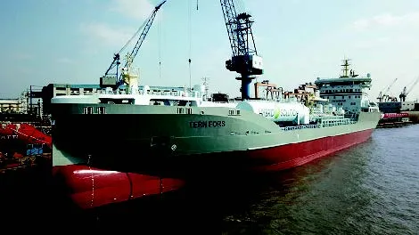 TERN FORS is the second tanker of a series of two that combine LNG/LNG engine-powered engines, are 100% biofuel compatible, emit no greenhouse gases or carbon particulates during port operations and facilitate enhanced digital solution for Just-in-Time management.